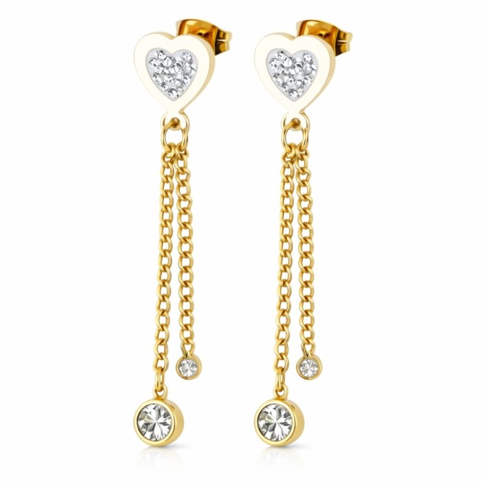 Femenino, refinado y brillante, estos Pendientes de corazón de acero dorado Son la joya perfecta para iluminar tu rostro y afirmar tu elegancia con sutileza.