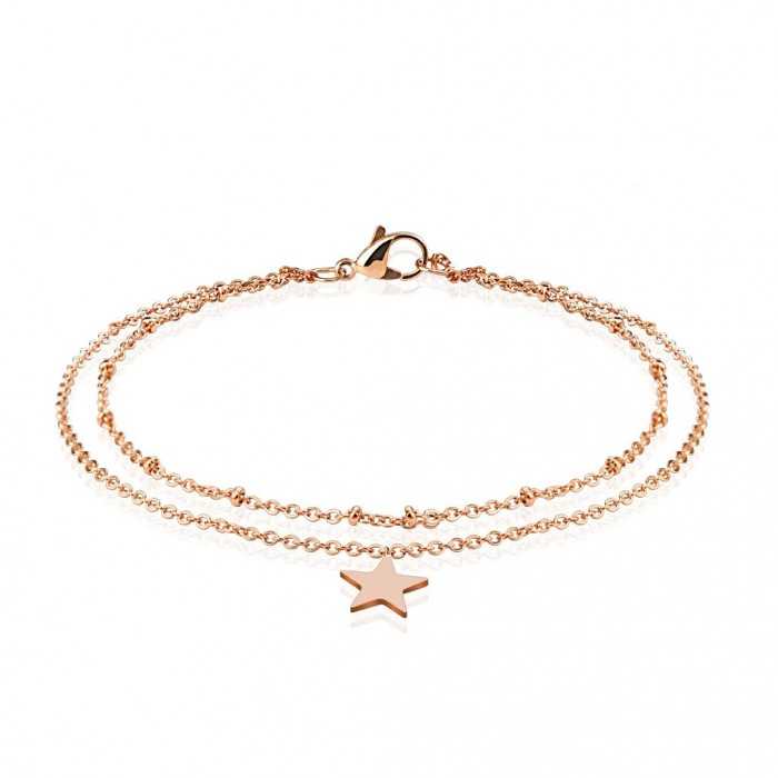 Pulsera de mujer con doble cadena ajustable al tobillo en acero estrella cobre