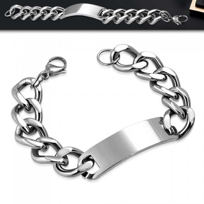 Pulsera cubana para hombre, placa de acero para grabar XXL 15mm 21cm