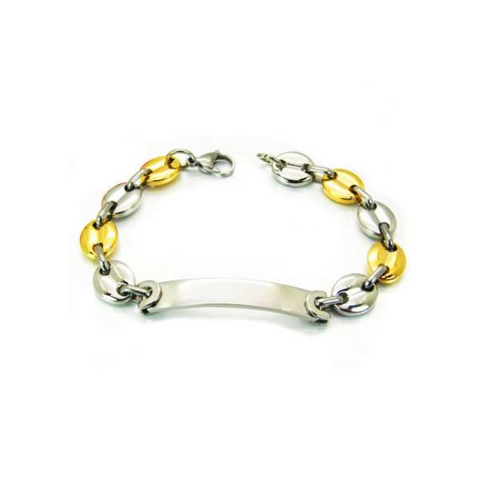 Pulsera de hombre Semillas de café Bicolor Steel & Gold Fine Plate Customizable 22cm