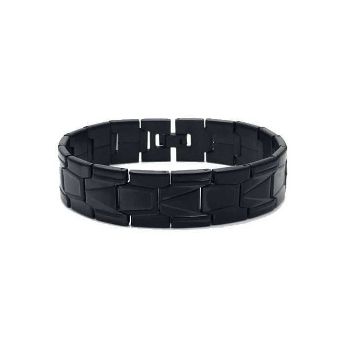 Descubra esta camiseta para hombres con un conector de acero inoxidable de color negro, cuya banda central está ligeramente elevada para un carácter aún más masculino. Esta comida original y muy elegante tiene un cierre seguro. Un gourmet masculino que añade una masculinidad seductora al gesto de la mano.