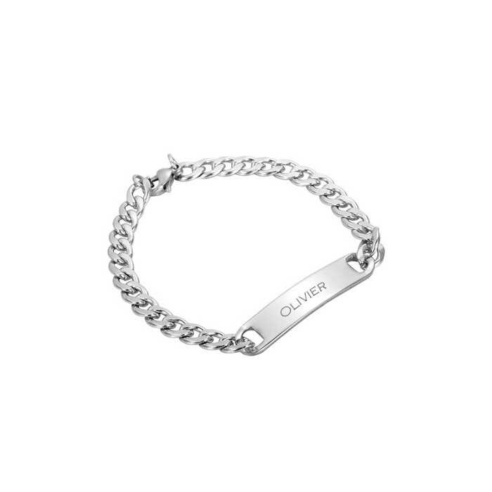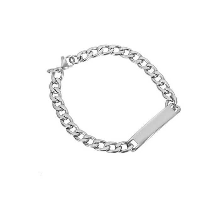 Pulsera de acero inoxidable con una malla plana con un ancho de 9mm y 22cm y una longitud placa personalizable con cierre de mosquetón seguro y discreto al mismo tiempo. La malla cubana sigue siendo uno de los regalos más populares.