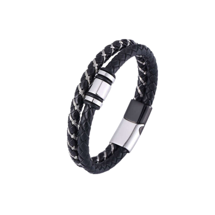 Te presentamos pulsera de hombres con diseño único y moderno, compuesto por dos cordones de cuero y uno cierre magnético de acero inoxidable.