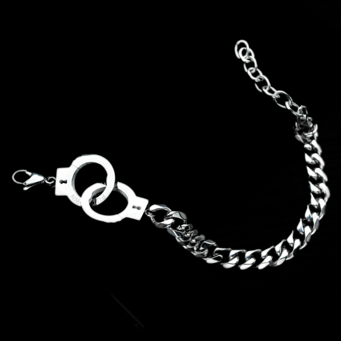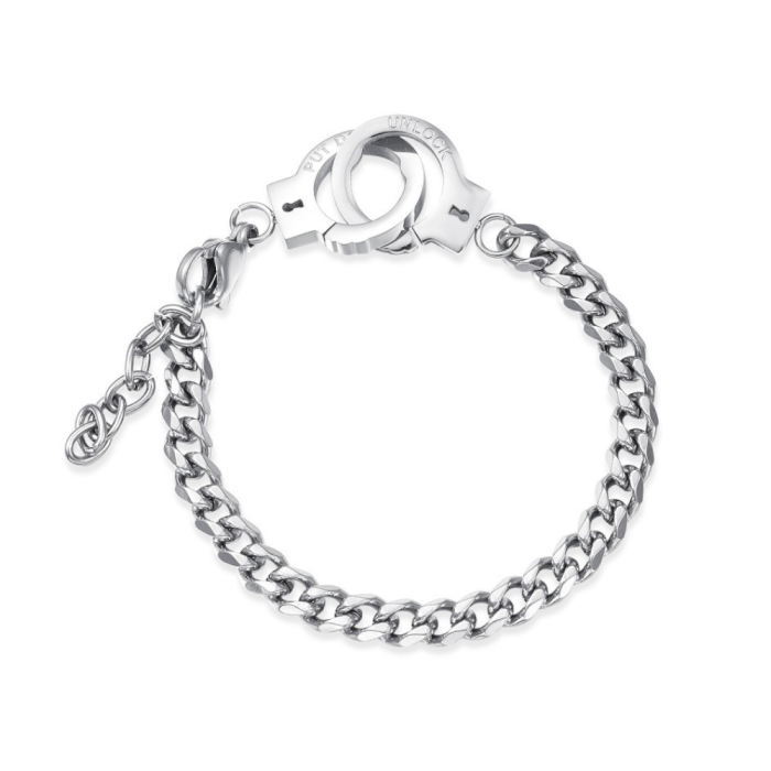 Manbijoux presenta este encantador menotte pulsera para hombres acero inoxidable ajustable para sellar tu sindicato con tu pareja. Las esposas son una símbolo del amor real y que nada y nadie puede separarte. Así que muestre su séquito que usted está comprometido en una relación seria y que usted está orgulloso de su amor.