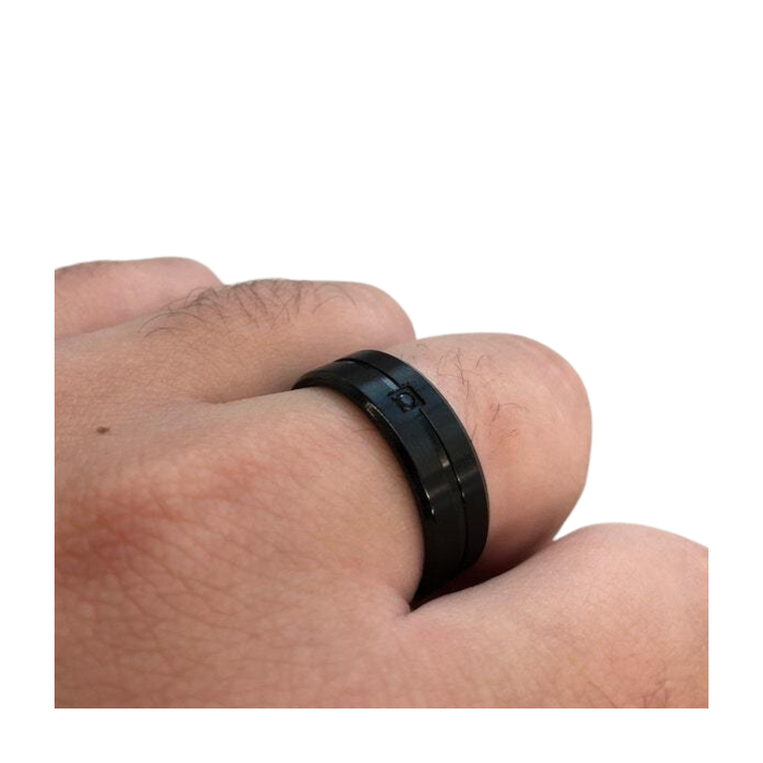 Ecco un bellissimo anello disegnato in un acciaio inossidabile nero di alta qualità evidenziato da una linea centrale lucida che crea un contrasto originale. L'anello è impostato con una pietra di zirconio nero tagliato con finesse per un uomo raffinato. Può essere adatto per l'impegno. Uno splendido anello che delizierà l'eleganza dell'uomo moderno. L'interno dell'anello è completamente liscio, quindi sposare il dito perfettamente con la sensazione.