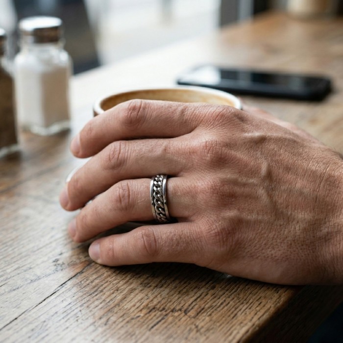 Anello da uomo in acciaio inossidabile catena nera rotante antistress