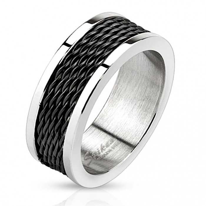 Anello da uomo in solido acciaio inossidabile e fascia in maglia nera
