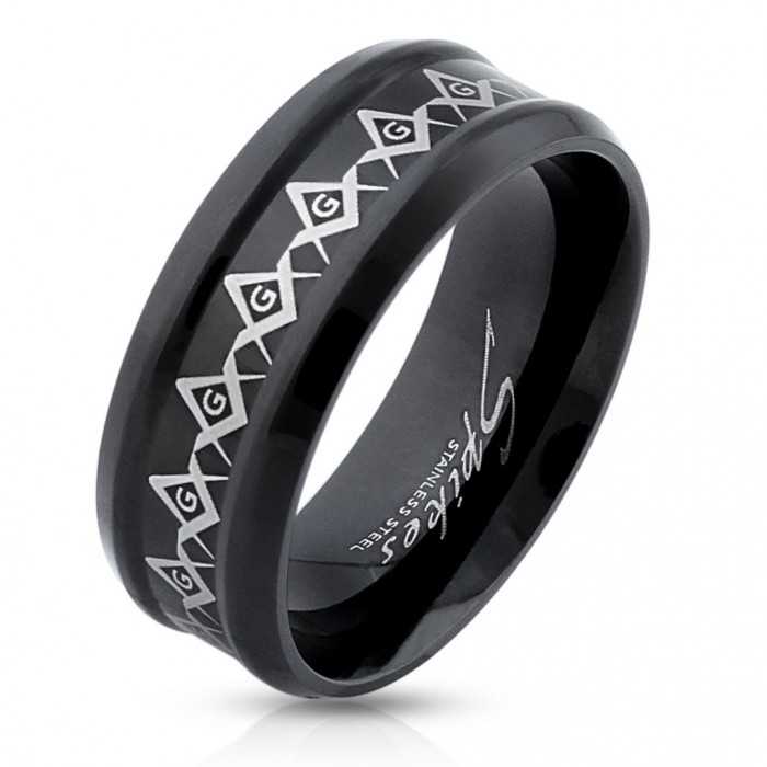 Ecco un anello con la lettera G associata con la piazza e la bussola è un simbolo famoso della massoneria. Il fregio che adorna questo anello per gli uomini in acciaio inox prende questo simbolo evidenziato da un impiallacciato nero depositato da ionizzazione.