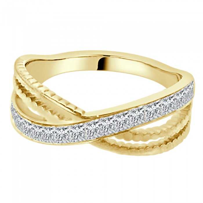 Anello di fidanzamento due anelli incrociati donna in acciaio dorato serratura cristalli