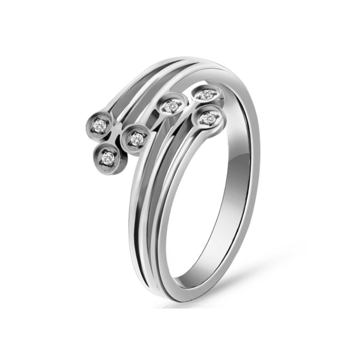Anello di fidanzamento da donna in acciaio zirconio cesellato e traforato