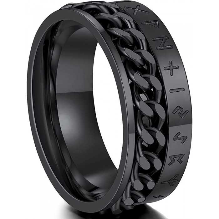 Anello anello Uomini Nero Acciaio Alfabeto Runique Viking Nordic Futhark Mythological