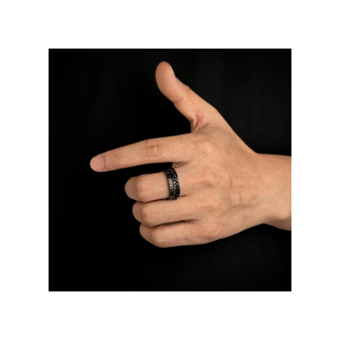 Anello in acciaio inossidabile nero Inciso Punzionamento alfabeto - Anello uomo Viking...