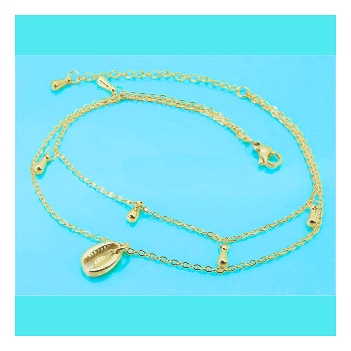 Siamo orgogliosi di presentarvi una creazione limitata Manbijoux. Ecco una bella catena a due corde in acciaio inossidabile placcato oro, che può essere essere indossato come un braccialetto. Questa catena della caviglia formato da due catene delicate su cui sono allegate breloques sotto forma di acqua drooping così come un bel grano di caffè. Con escarpins o infradito, in vacanza o in ufficio, questa catena della caviglia sarà invitata a tutte le vestizioni femminili.