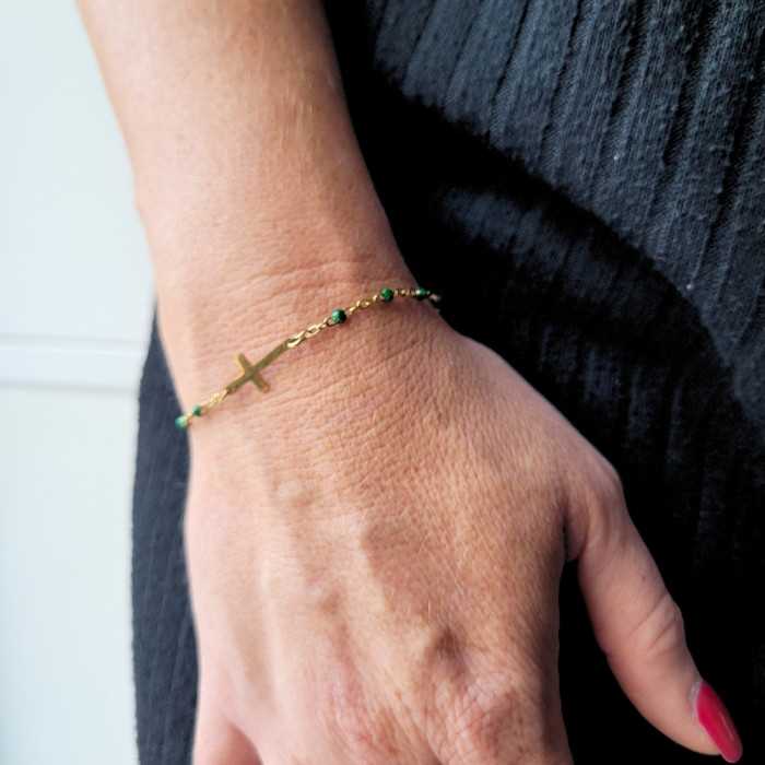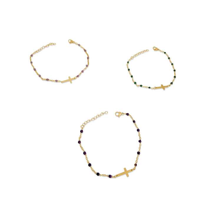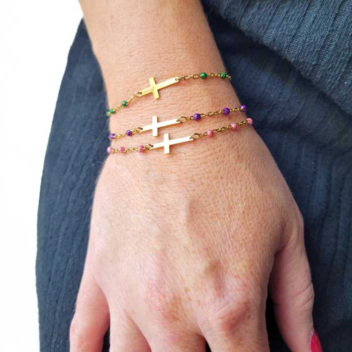 Tra i gioielli più comuni con un simbolo molto forte è il croce. Lo offriamo su una bella braccialetto pulito e audace. Scoprite questa bella croce donna braccialetto progettato in oro oro oro oro oro acciaio inox con perle smaltate. Cbracciale decorerà il polso con eleganza. È magnificata al centro da una croce d'oro lucida e brillante. Mi riempira' il polso su cui si trova. Questo è bracciale donna a buon mercato è perfettamente regolabile a qualsiasi dimensione del polso grazie alla piccola catena di regolazione aggiuntiva. Questo è bracciale donna ha un moschettone sicuro e discreto allo stesso tempo, dando la possibilità di regolarlo come desiderato. Perfetto dono religioso de comunione o battesimo. Sono disponibili diversi colori.