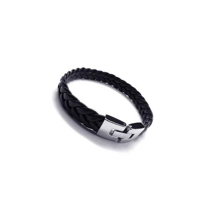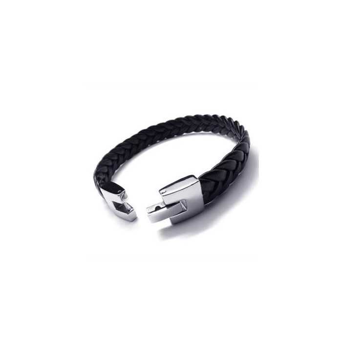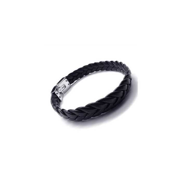 Bracciale sobrio in vera pelle intrecciata nera e dotato di chiusura in acciaio inossidabile di alta qualità e sicuro.