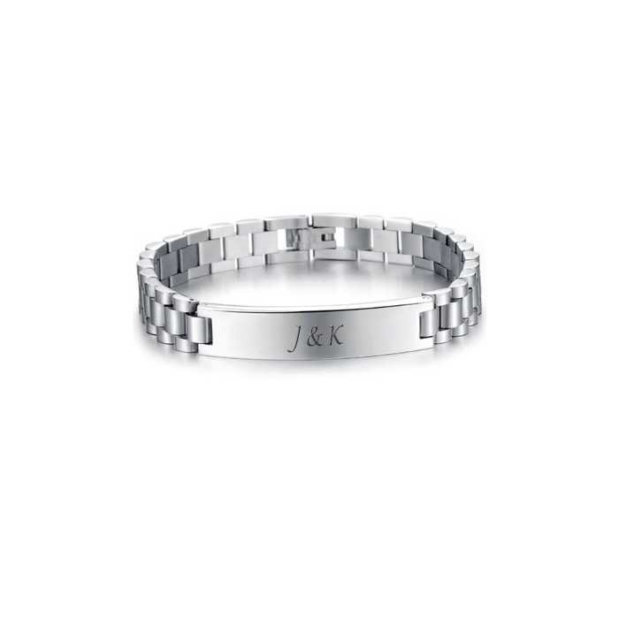 La piastra è completamente personalizzabile. Puoi farlo bruciare Un nome, iniziali, data o messaggio speciale. L'incisione può essere fatta sul lato anteriore o posteriore, rendendo questo braccialetto ideale come regalo uomo In occasione di un compleanno, Natale, festa del papà o qualsiasi altra celebrazione.