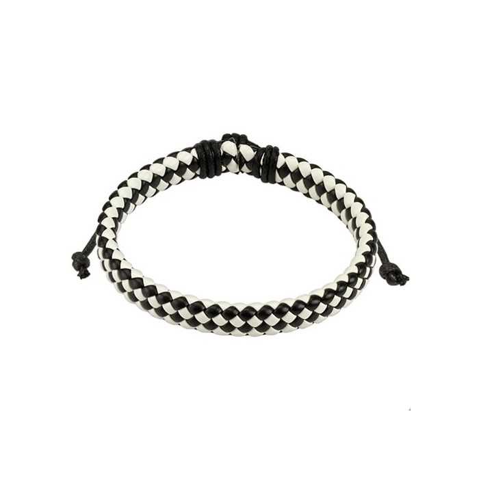 Cinturino in pelle intrecciata di colore NOIR e BLANC. Ideale per fan di un club o di un paese con colori bianchi e neri come Juventus, Nuova Zelanda...