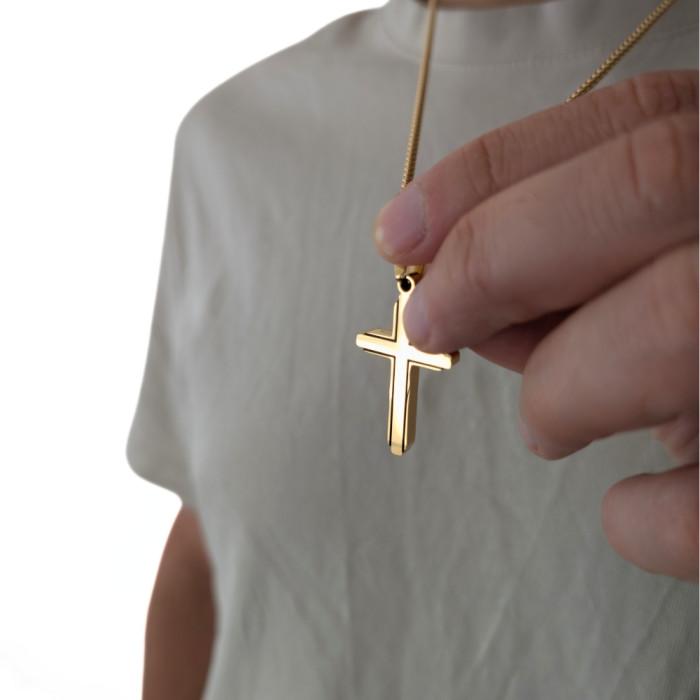 Concepito in acciaio inossidabile dorato al'oro fine questo collare pendente croce uomo in senso religioso consiste in una croce di design bicipite e bordo nero incise, che sottolineano la sua forma con eleganza. È un simbolo di vita e di rinascita, che si trasmette di generazione in generazione, segnando la vita di chi lo indossa ogni giorno. Un pendentif uomo croce d'oro che è davvero unica con finiture accurate e accurate che uniscono moda e religione.