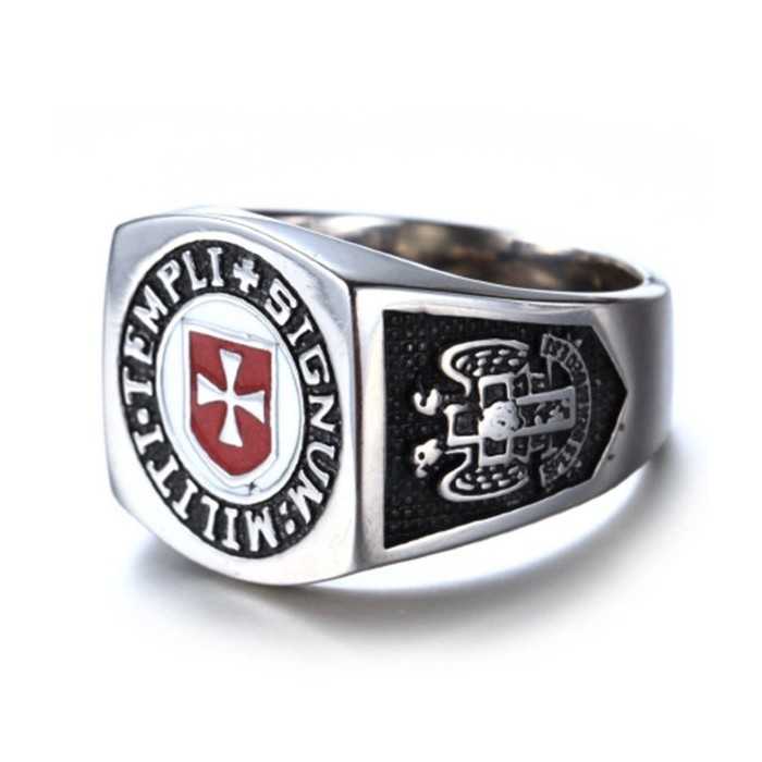 Anello con sigillo da uomo in acciaio croce di Malta soldati dell'ordine dei Templari Templi Signum Militi