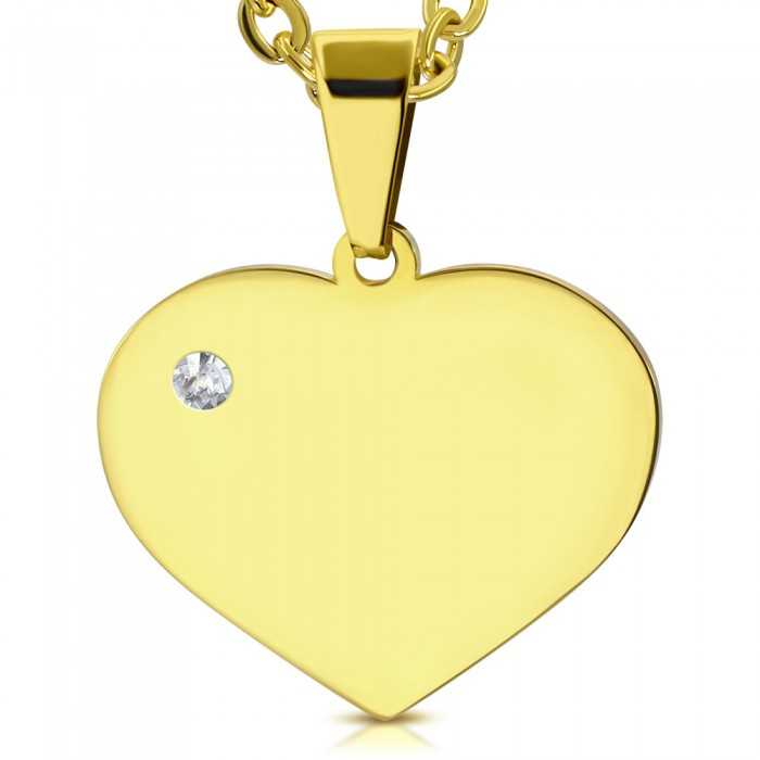 Ciondolo da donna placcato oro con pietra zircone intarsiata con piastra a cuore da incidere