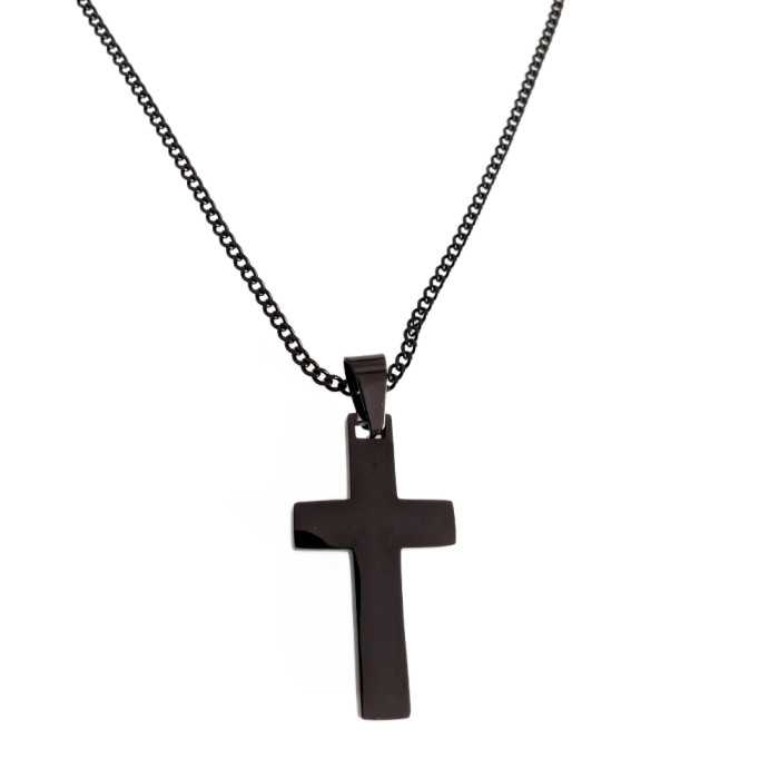 Colore Nero Acciaio Collana Ciondolo Croce Uomo