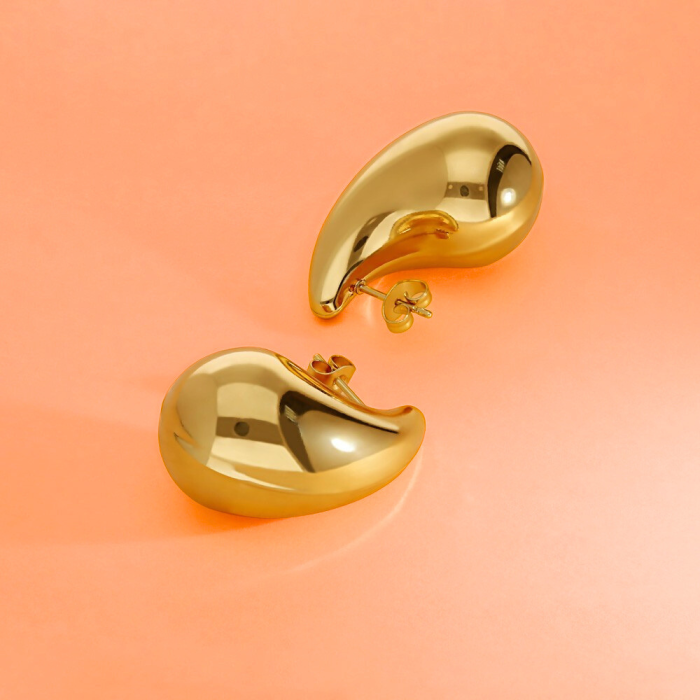 Sublime il tuo stile con questi orecchini a forma di goccia d'acqua, simboli di eleganza e raffinatezza. Disegnate in acciaio inossidabile dorato a oro fino questi orecchini pendenti tendenti e imponenti aumenteranno la tua eleganza.