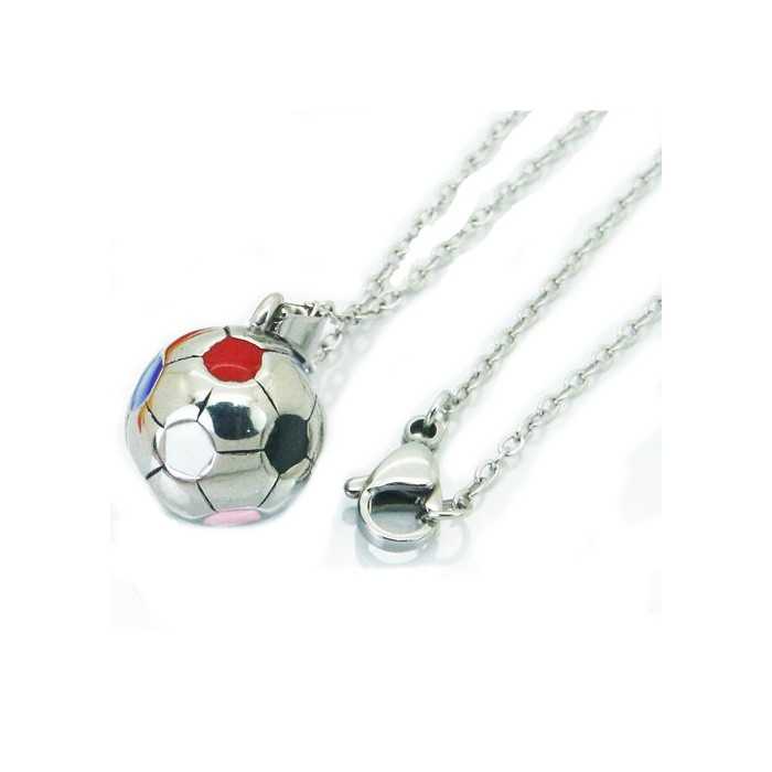 Ciondolo da donna, uomo, acciaio, pallone da calcio multicolore, blu, bianco, rosso e 1 catena