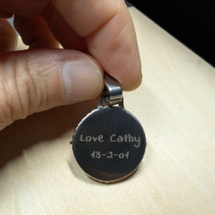 Andiamo al livello superiore! L'incisione laser arriva a HommeBijoux.com Senza aumento dei prezzi. Creare a pendente unico con un Incisione laser ad alta precisione. Personalizza il viso posteriore di questo ciondolo Con una frase, una parola, un nome, una data o un simboli. Incisione di colore possibile su richiesta.