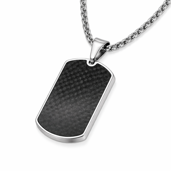 Piastra militare da uomo Carbonio e pendente in acciaio inox e catena