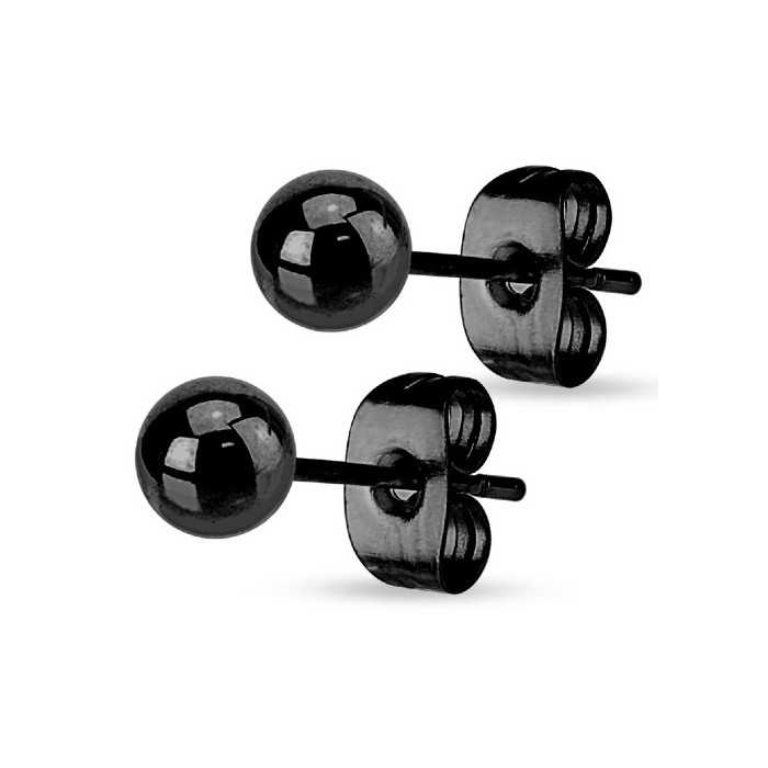 Orecchini a perno con sfere in acciaio inossidabile nero per donne e uomini - Larghezza orecchini a scelta 3 mm o 5 mm