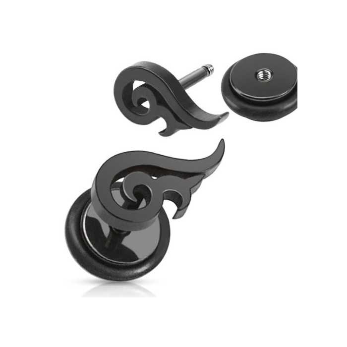 Orecchini di chiusura in acciaio placcato nero, in forma tribale originale.