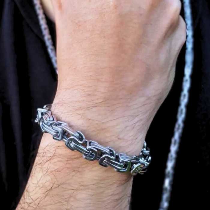 Bracciale da uomo in argento con catena bizantina e maglia in acciaio inossidabile, larghezza 8 mm