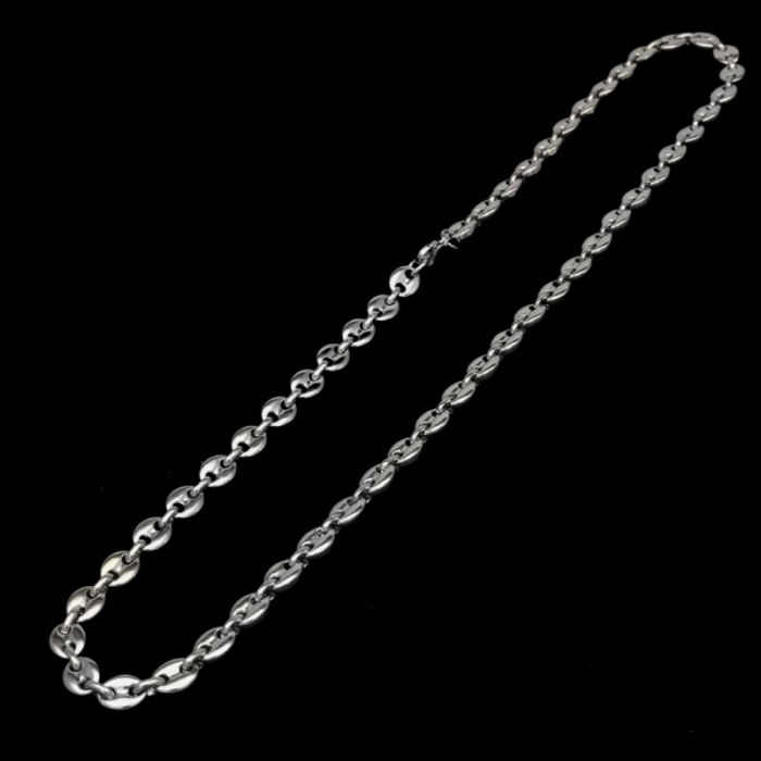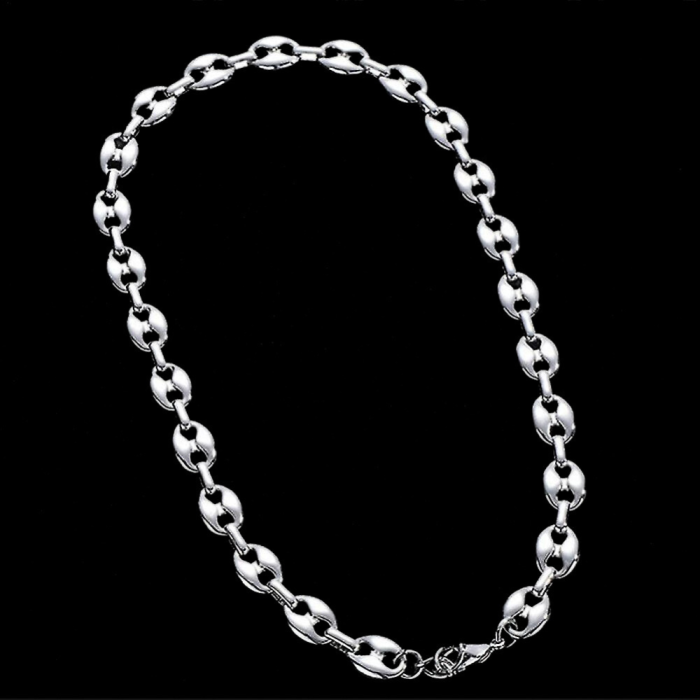 L'uomo gioiello vi presenta questo bel ornamento collare e braccialetto in maglia di grani di caffè in acciaio inossidabile con un design sobrio, pulito e delicato. Il si impone come un valore sicuro con il suo tocco decisamente senza tempo. La larghezza è di 7 mm e la collana è lunga 60 centimetri. Questa catena e questo braccialetto sono dotati di una chiusura a muschetto sicura e discreta allo stesso tempo. La catena e braccialetto di chicchi di caffè è composta da: legami ovali leggermente gonfie, simili a chicchi di caffè, disposte in modo regolare e collegate tra loro da piccoli anelli. Ciascun collegamento presenta una ranura centrale che accentuerà la somiglianza con un vero chicco di caffè. Questa catena è apprezzata per il suo design pulito e maschile, anche se può essere adatta anche alla gente femminile. Le gioielli di semi di caffè rimane un valore sicuro e molto apprezzato, perfetto come regalo di compleanno, di Natale, di San Valentino o semplicemente per sorprendere e compiacere.