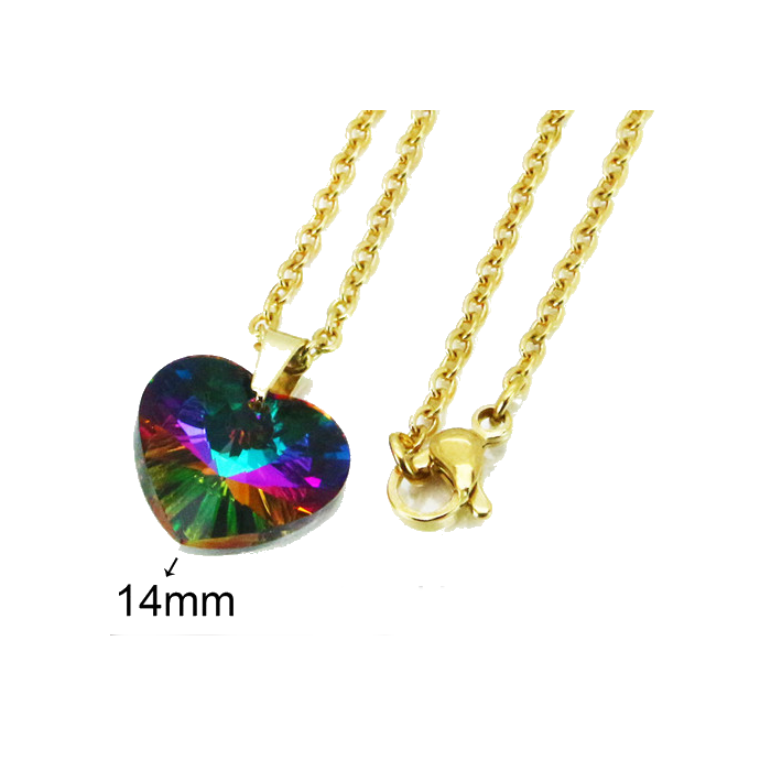 Set collana e pendente a catena da donna, acciaio dorato, cuore, cristallo multicolor