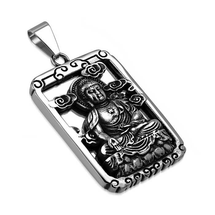 Pendentif original et réaliste où se dessine en relief sur une plaque, un bouddha méditant. Conçu en acier inoxydable d'une belle épaisseur, ce pendentif pour homme conjugue mode et religion.