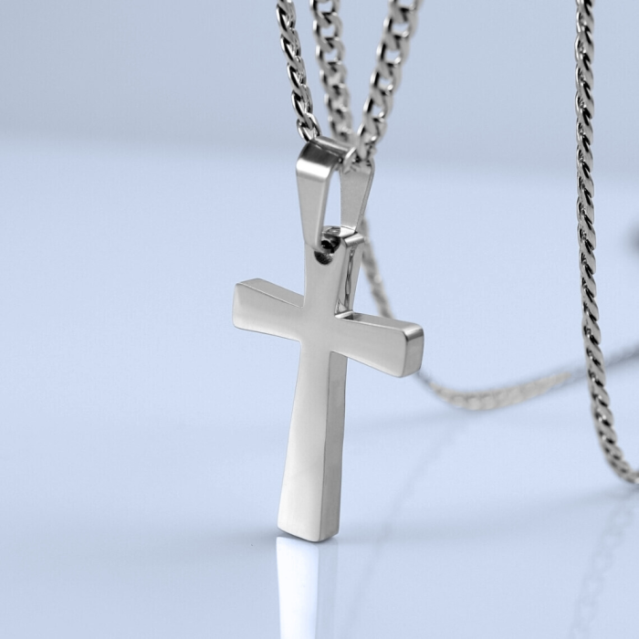 La croix chrétienne est un symbole reconnaissable entre tous, voici un discret et joli pendentif en acier inoxydable en forme de croix latine personnalisable.