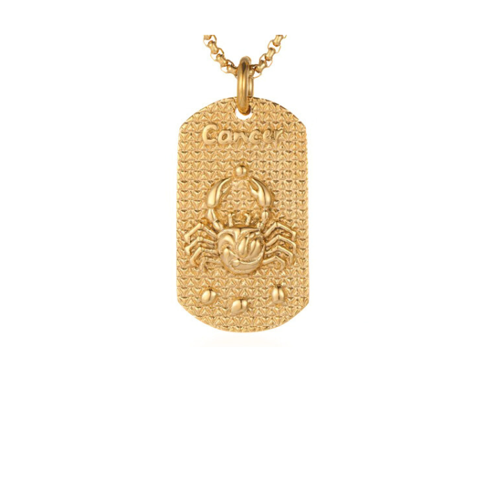 Collier pendentif homme acier doré or plaque signe astrologique cancer